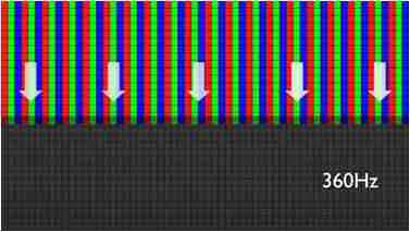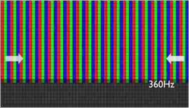 传统液晶驱动是从左到右单向进行,,,在画面更新速度愈来越愈快的情况下,,,,位于驱动线路末端的右下角区域,,,,画素的闸极来不及在短时间内获得足够电压,,,无法显示出正确的颜色资讯。。。